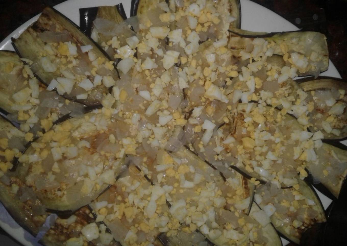 Berenjenas con cebolla y huevo