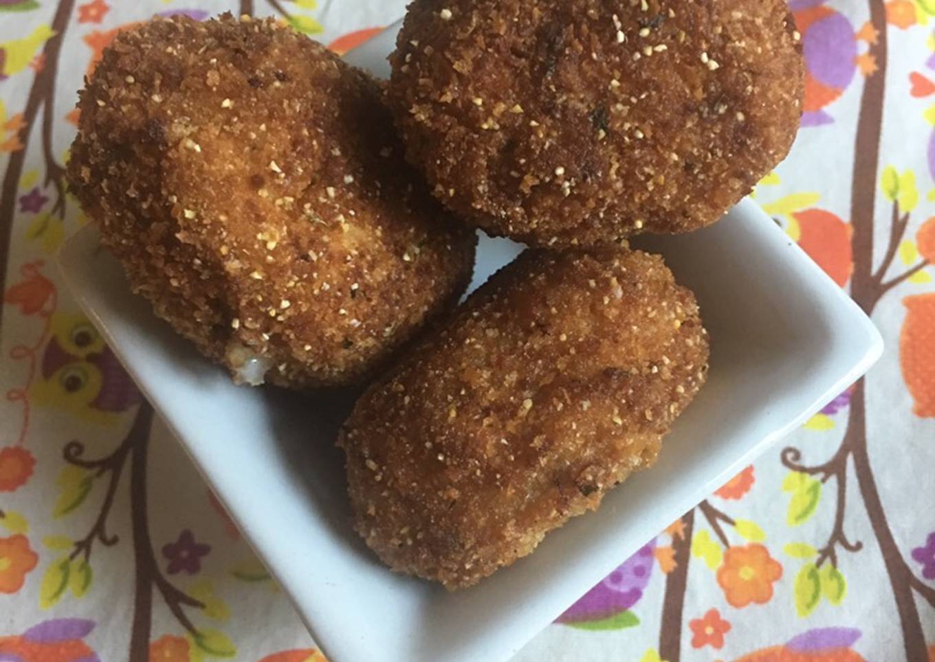 - Sacar de a cucharadas y meterla en pan rallado, armar una bola pasarla por huevo y volver a pasarla por pan rallado.