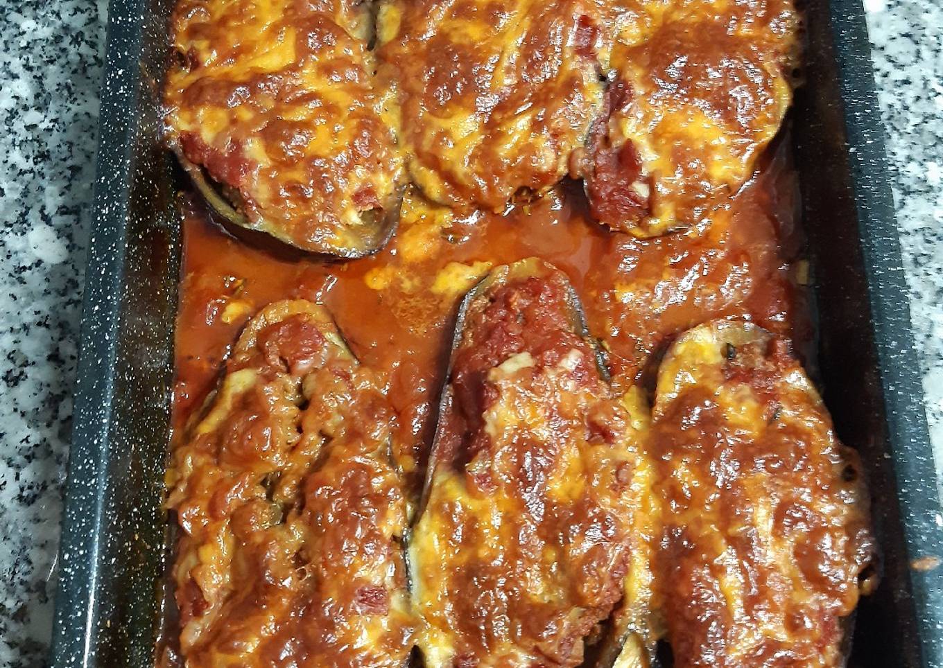 - En una bandeja colocas un poco de aceite de oliva y colocas las mitades de berenjenas, las rellenas con la preparación y le agregas queso mozzarella rallado encima y llevas al horno por 45 minutos aproximadamente según la potencia del horno y listo para disfrutar