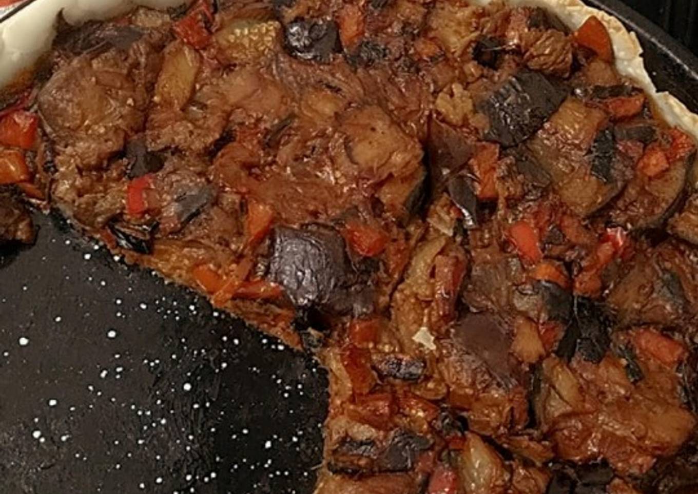 - Verter la preparación de las berenjenas en la tarta y llevar al horno por aproximadamente 15 minutos.