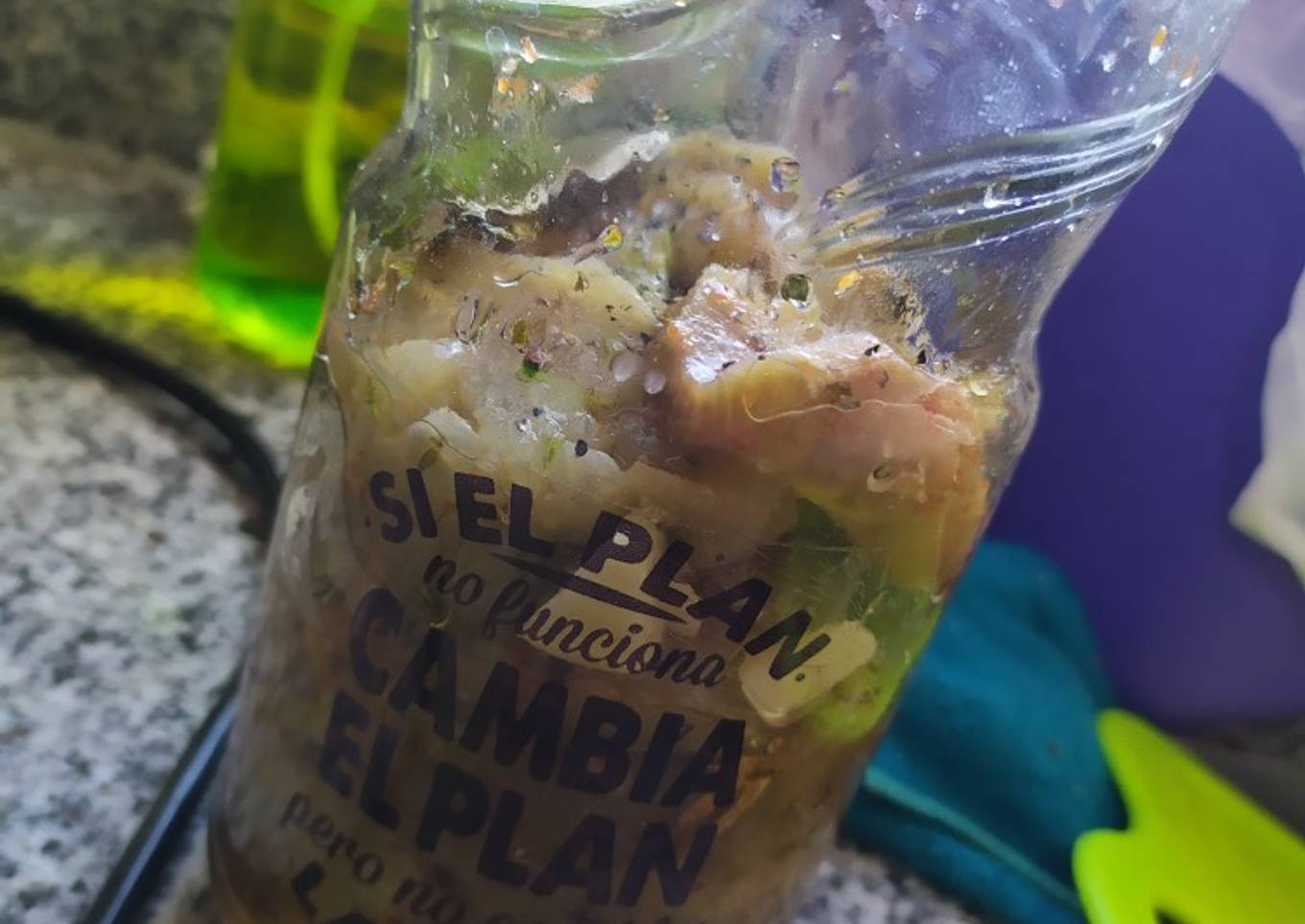 - En un pote ponemos aceite, y condimentos. Una vez frías las pasamos por esta mezcla y apilamos en un frasco.