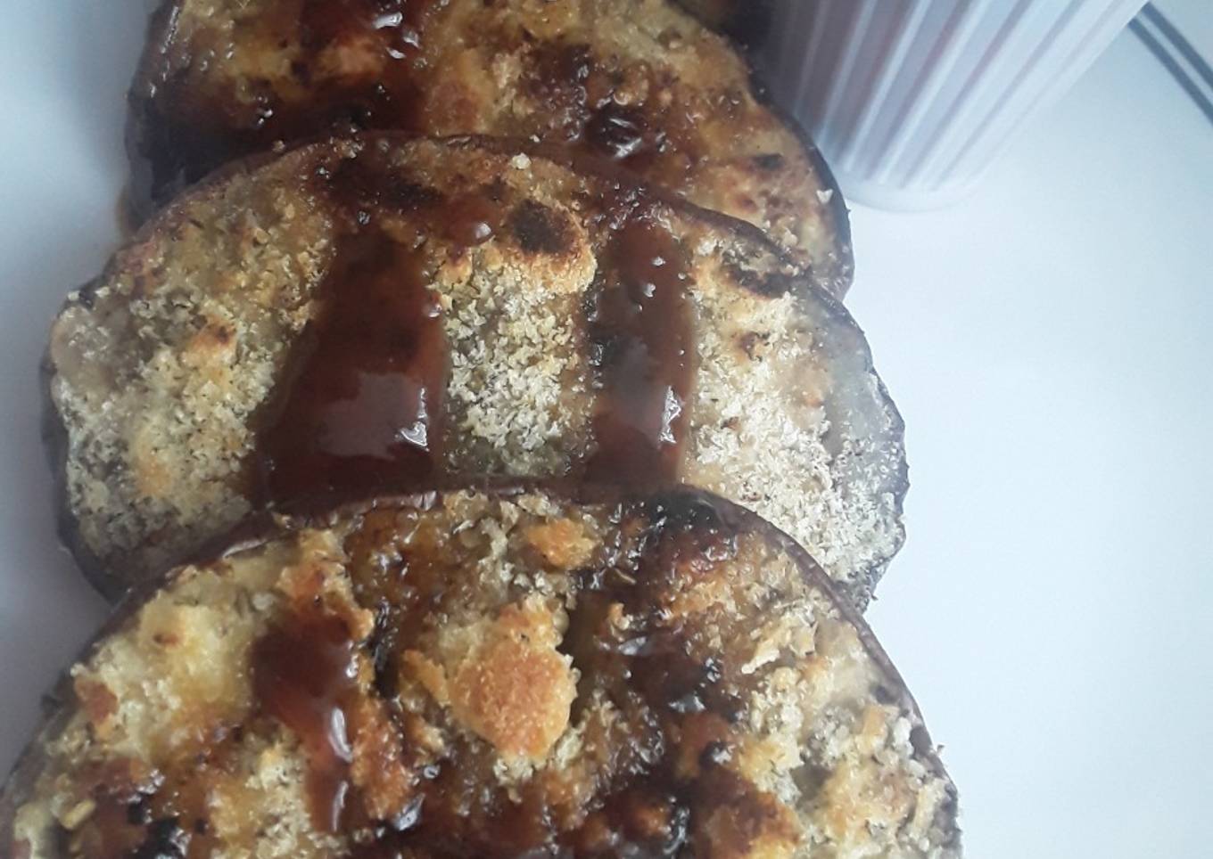 Berenjenas apanadas en salsa de panela!!! 🍆🥓🍘😝😜😝.