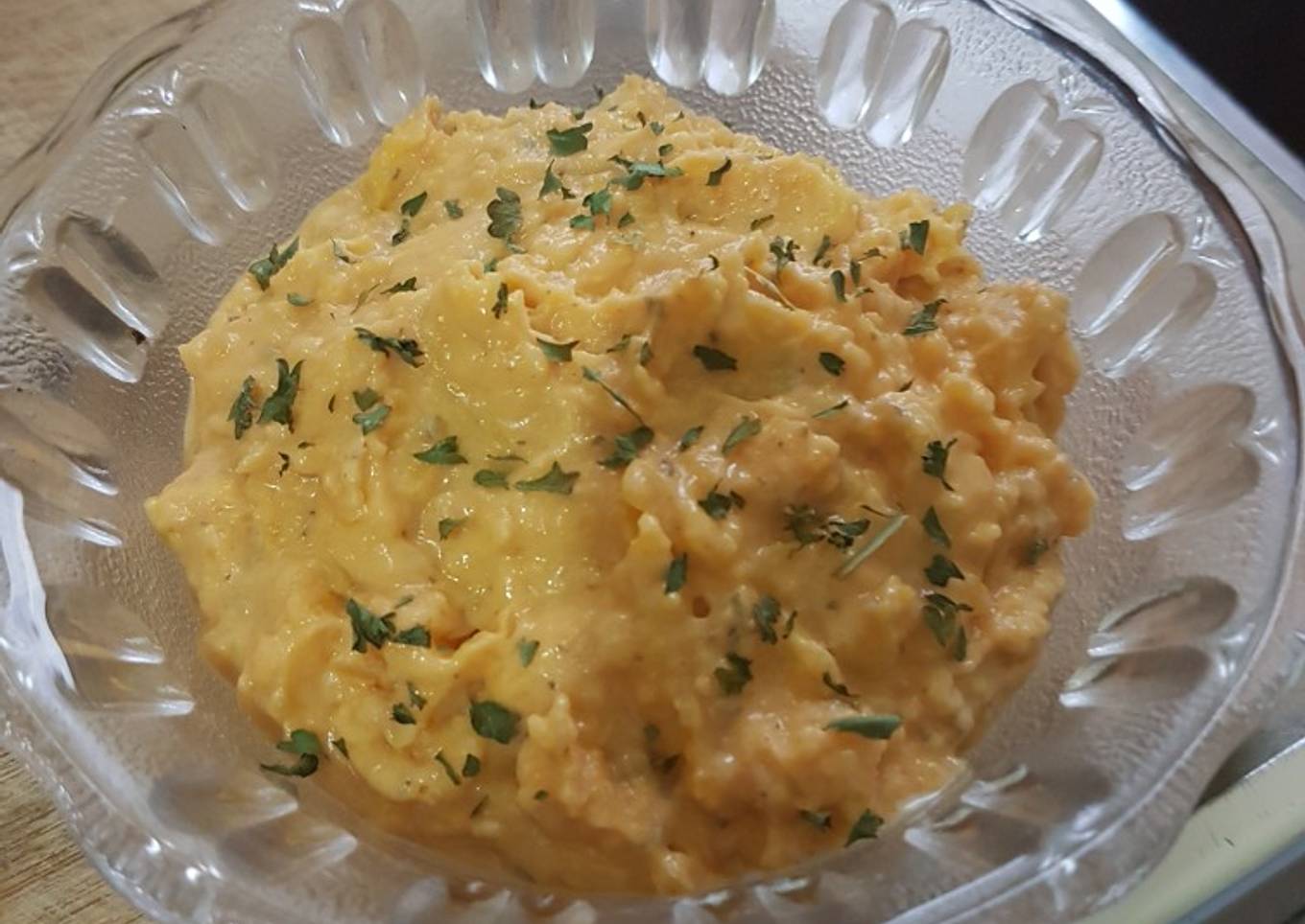 - En un recipiente mezclamos la pulpa de calabaza con la mayonesa, mostaza, orégano, cayena y el comino.