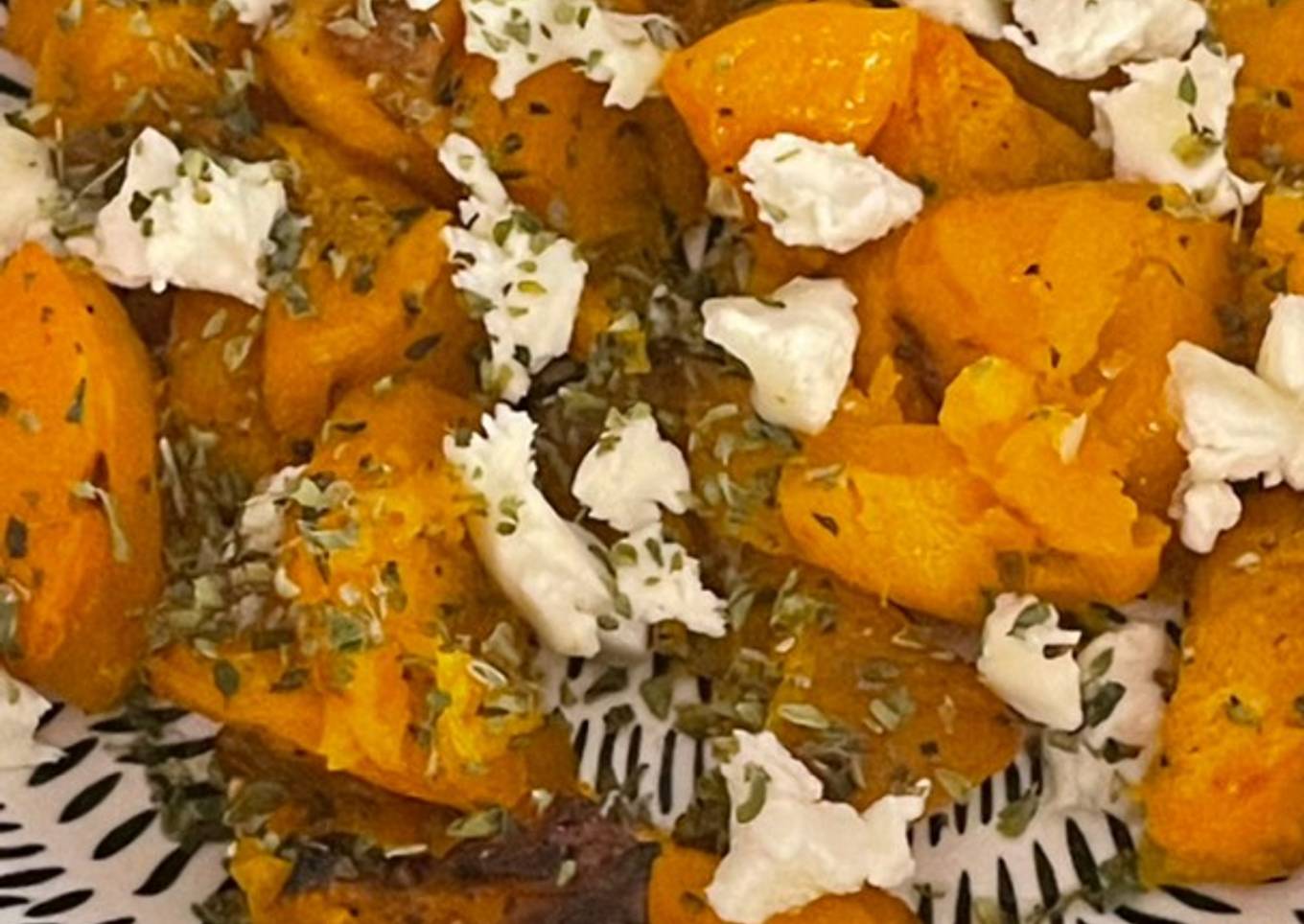 - Cuando la retiramos del horno, le añadimos el queso de cabra y las especias.