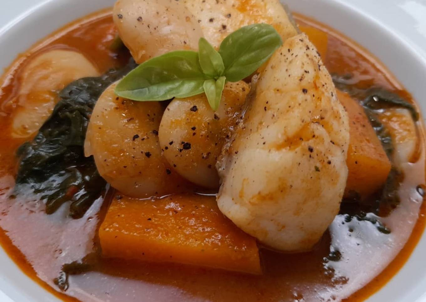 Guisote de judiones con bacalao, calabaza y espinacas