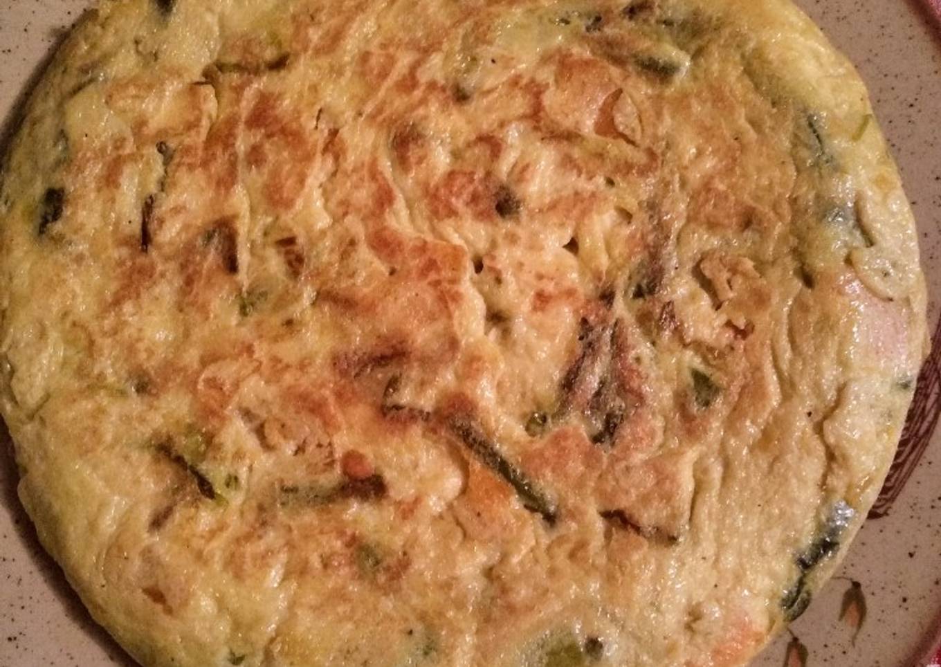 Tortilla de espárragos, ajos tiernos y calabaza