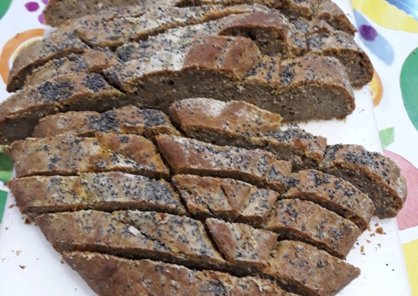 - Hemos precalentado el horno a 250°C. Estando la bandeja caliente podremos papel de horno y encima la masa a la que daremos forma con la espátula y lo marcaremos. Pintaremos la superficie con aceite de oliva, espolvorear las semillas de amapola y espolvorear un poco de harina para darle un toque rústico.