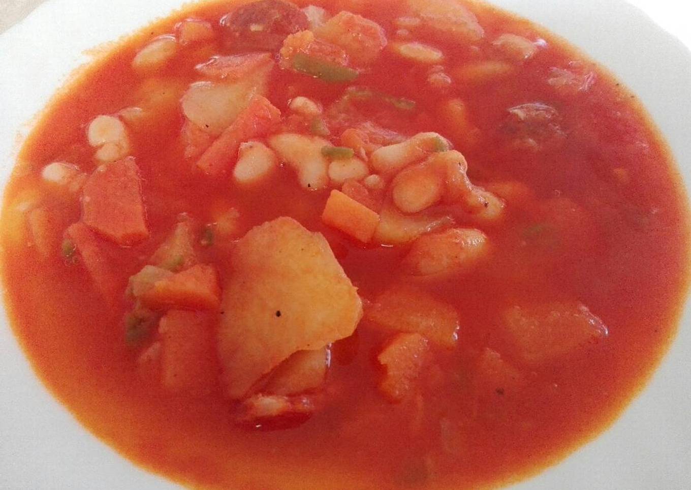 - Agregar el pimentón e inmediatamente remover para que no se queme y añadir el agua hasta cubrir y unos dedos más (Las alubias tienden a agotar el agua y engordar).
