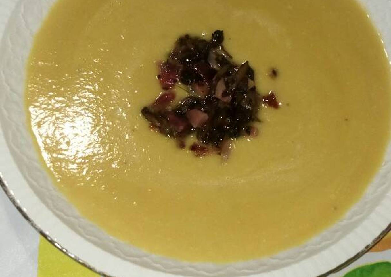 Instructions to make to make Puré de calabaza con setas y jamón serrano salteado