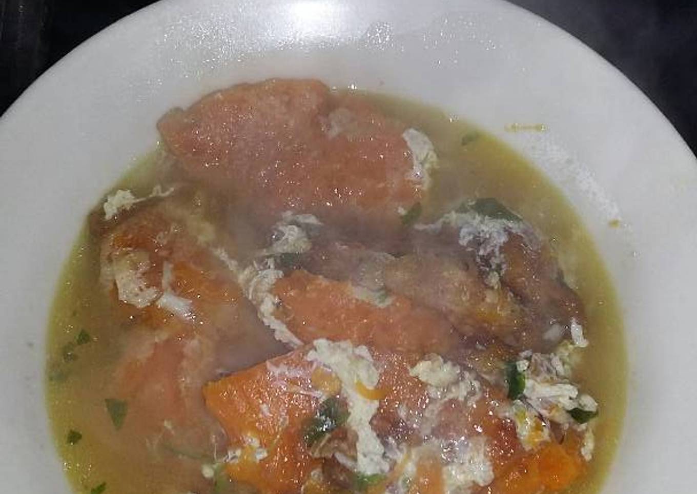 - Cuando empiece a hervir bajamos a fuego medio y tapamos. Vamos removiendo de vez en cuando hasta que veamos que la calabaza está blandita. Cuando ya veamos que está lista añadimos lentamente el huevo que nos sobró de rebozar y volvemos a remover con cuidado. Tapamos y apagamos el fuego.