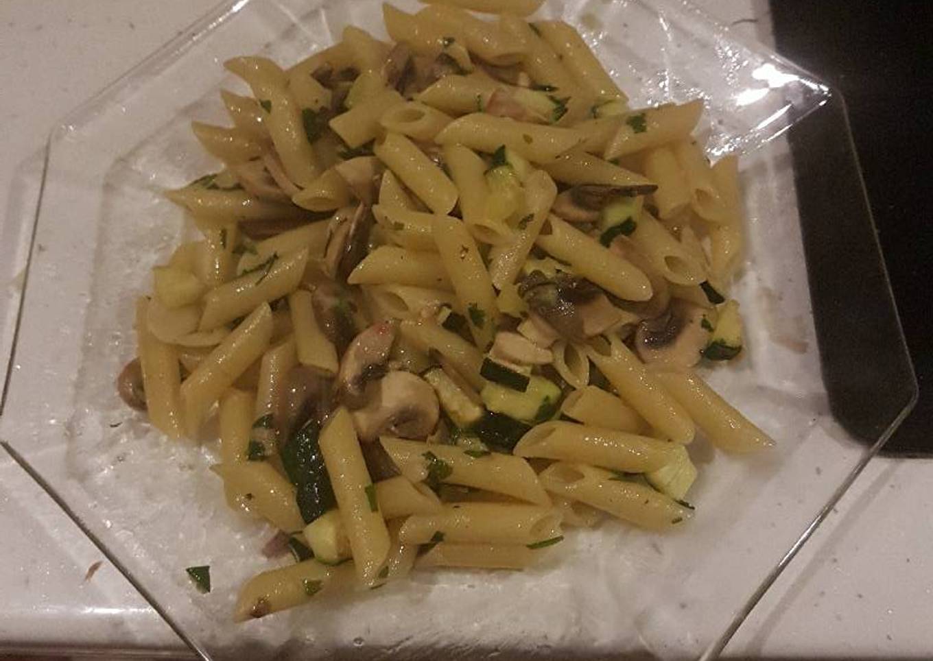 - Colar la pasta y agregar junto con la calabaza a la sartén con los champiñones y demás ingredientes
