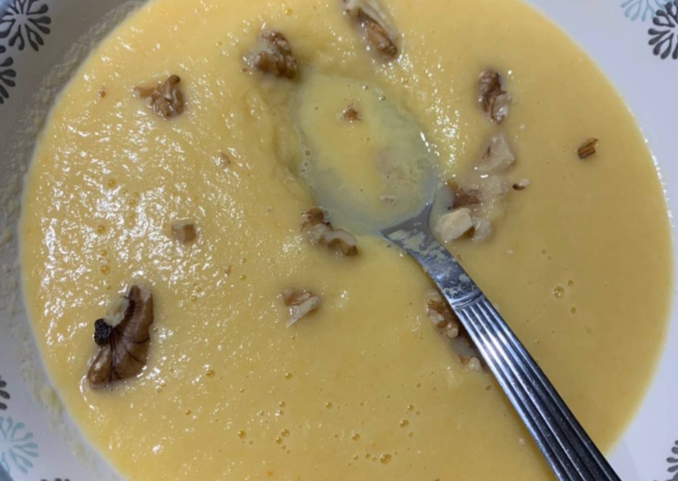 - Cuando esté retiramos del fuego y lo pasamos a la batidora y lo trituramos, después repartimos las nueces entre todos los platos