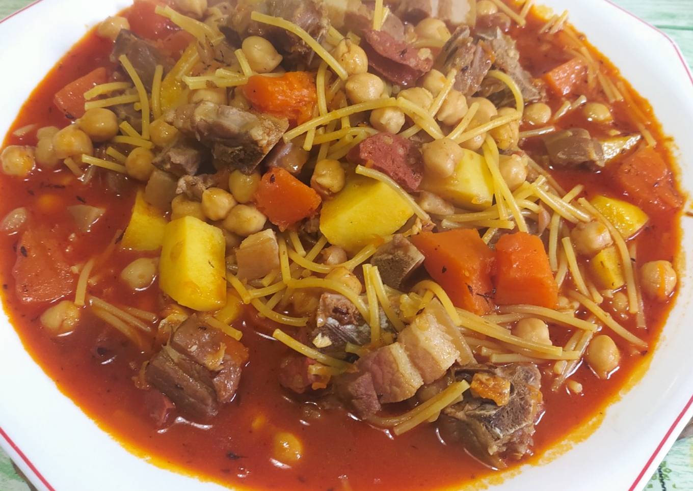 Plato típico de la tradicional gastronomía canaria que se suele tomar como plato único y que sus principales ingredientes son: Garbanzos, carne, fideos y patatas. Plato de origen humilde que en tiempos de hambruna no se utilizaba la carne por su escasez y se cocinaba solamente con los vegetales.